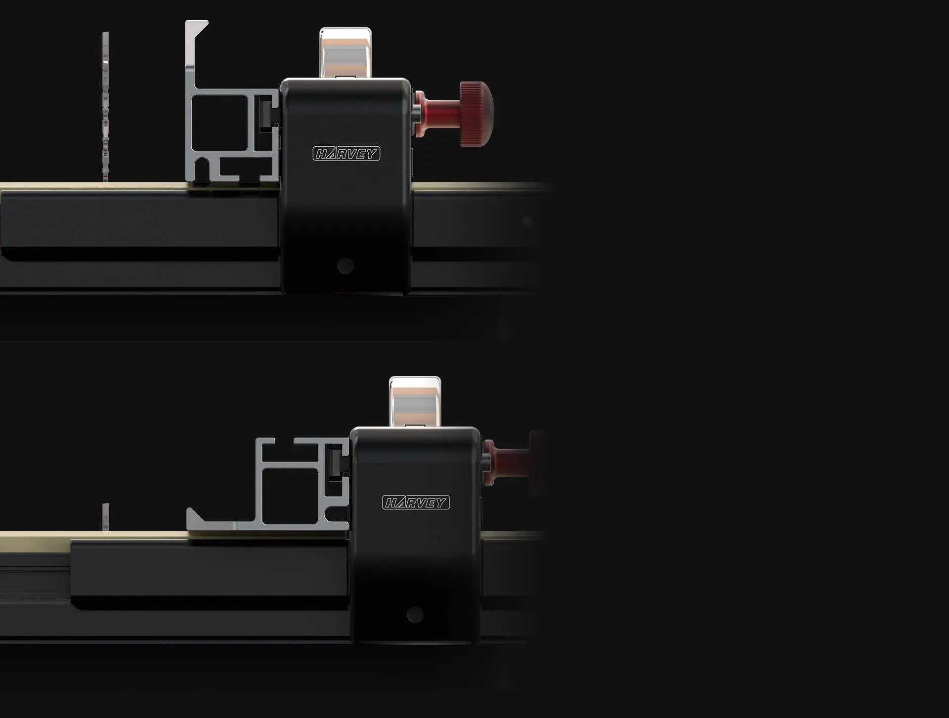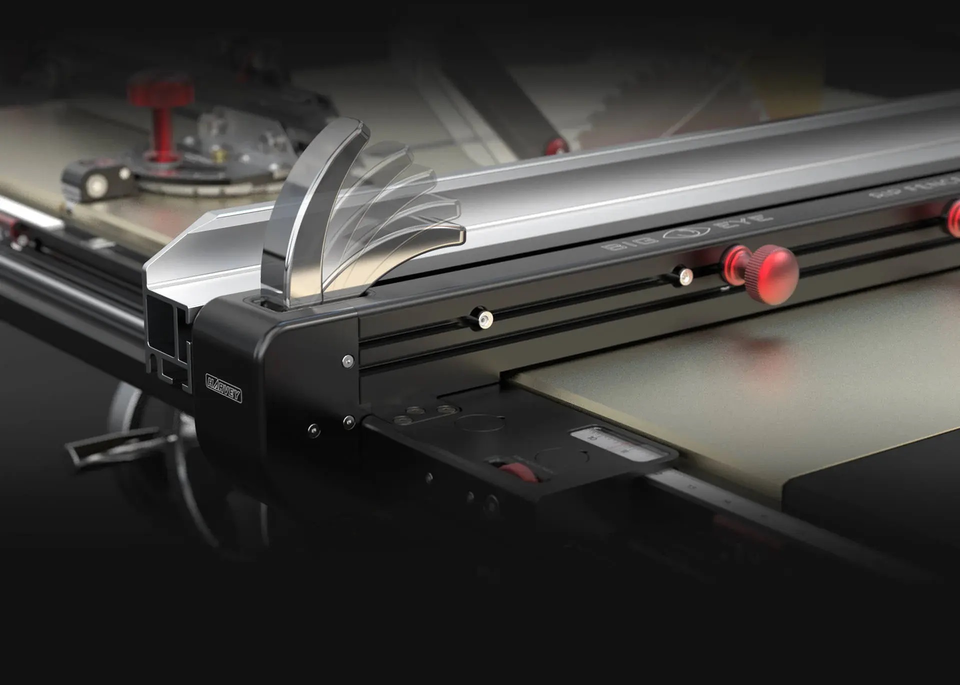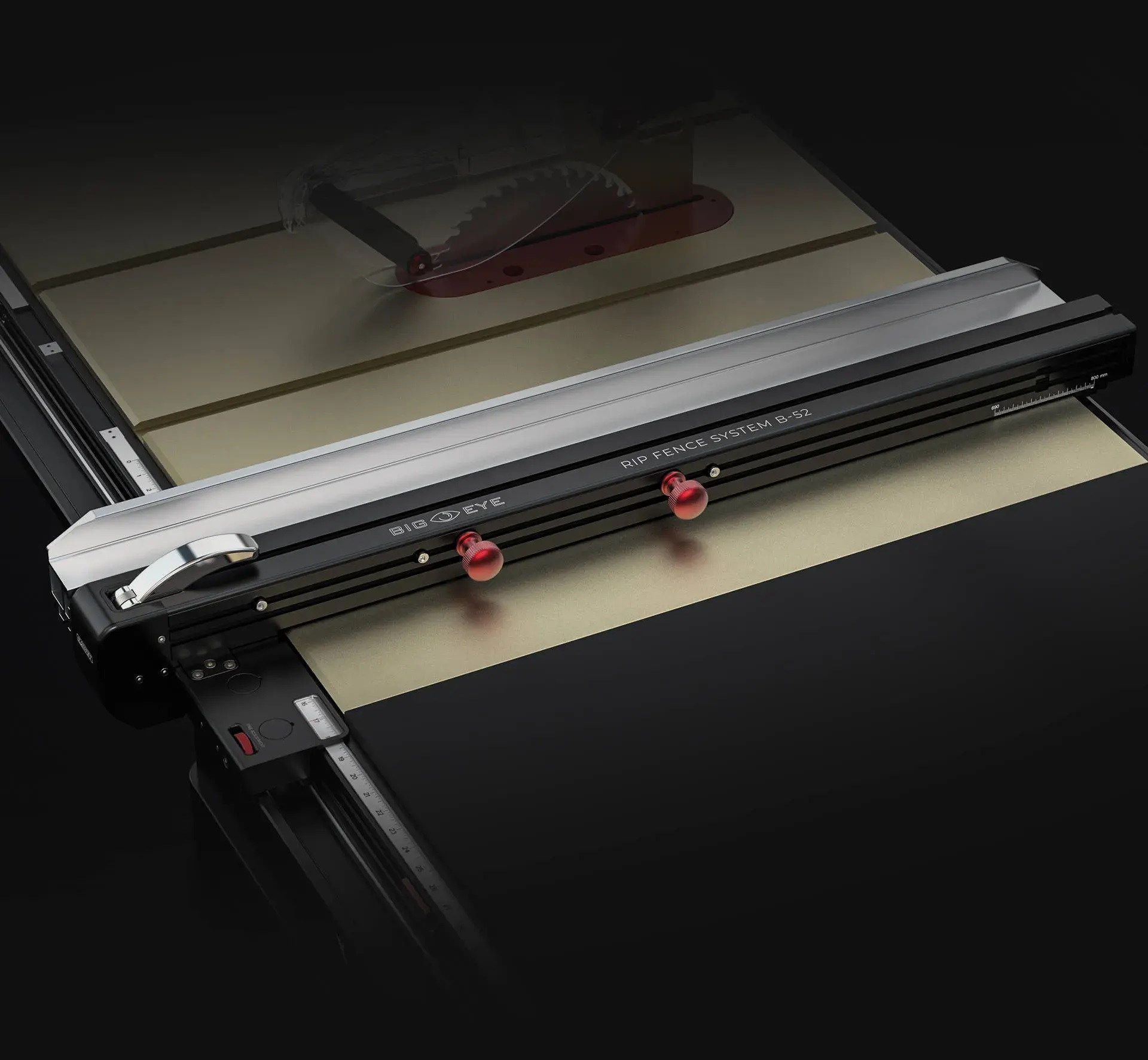| 前後同時ロックによりワンアクションで確実に固定し、切断中のズレを防ぎ、0.02mmの高精度を維持します。 | 上部配置のロックハンドルで直感操作を実現し、T字型フェンスのロッキングハンドルのように、オペレーターの脚、腰への接触によるケガのリスクを軽減します。 |